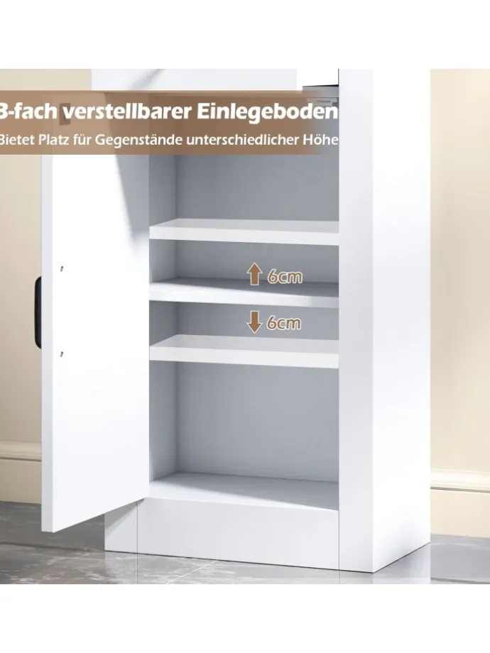 Abstand zwischen verstellbaren Positionen (unteres Regal): 6 cm