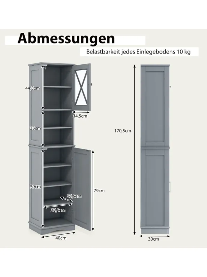Gesamtmaße: 40 x 30 x 170,5 cm (L x B x H)
