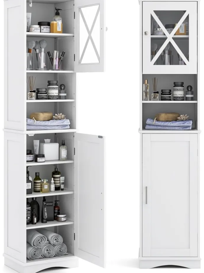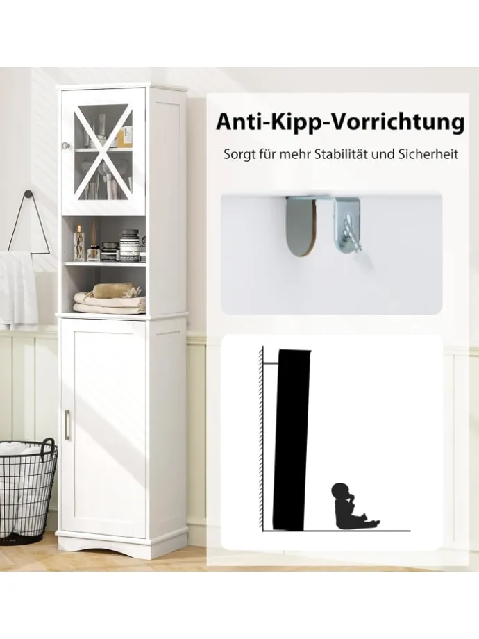 Nutzen Sie den Stauraum in engen Räumen mit unserem hohen Badezimmer-Schrank!