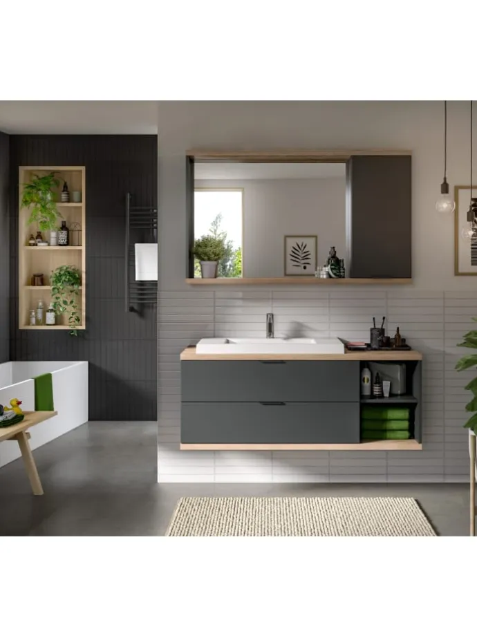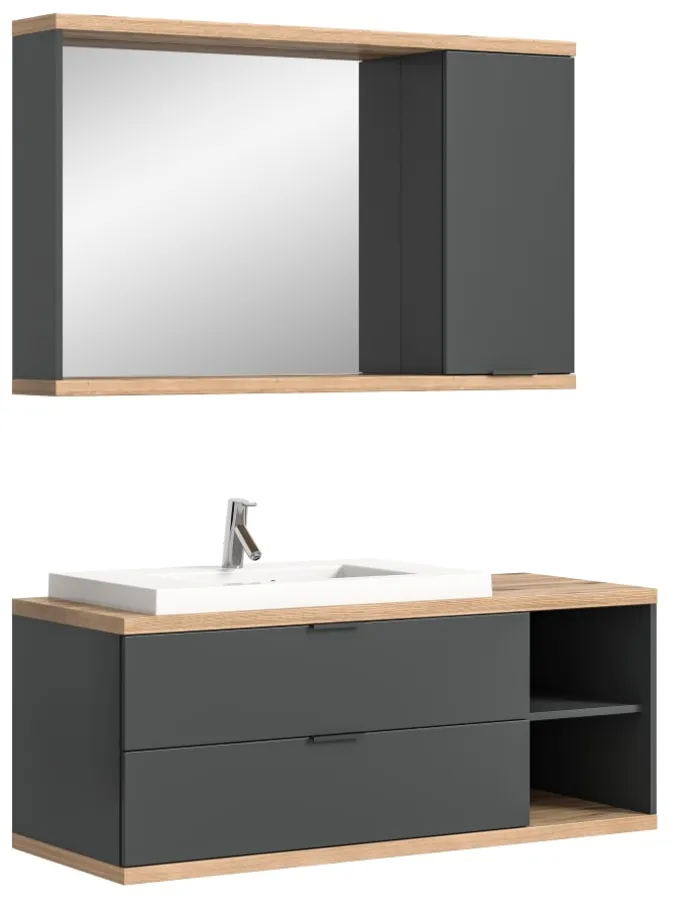 Badkombination (B/H/T: 130x160x48 cm) in anthrazit grau