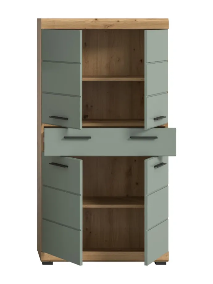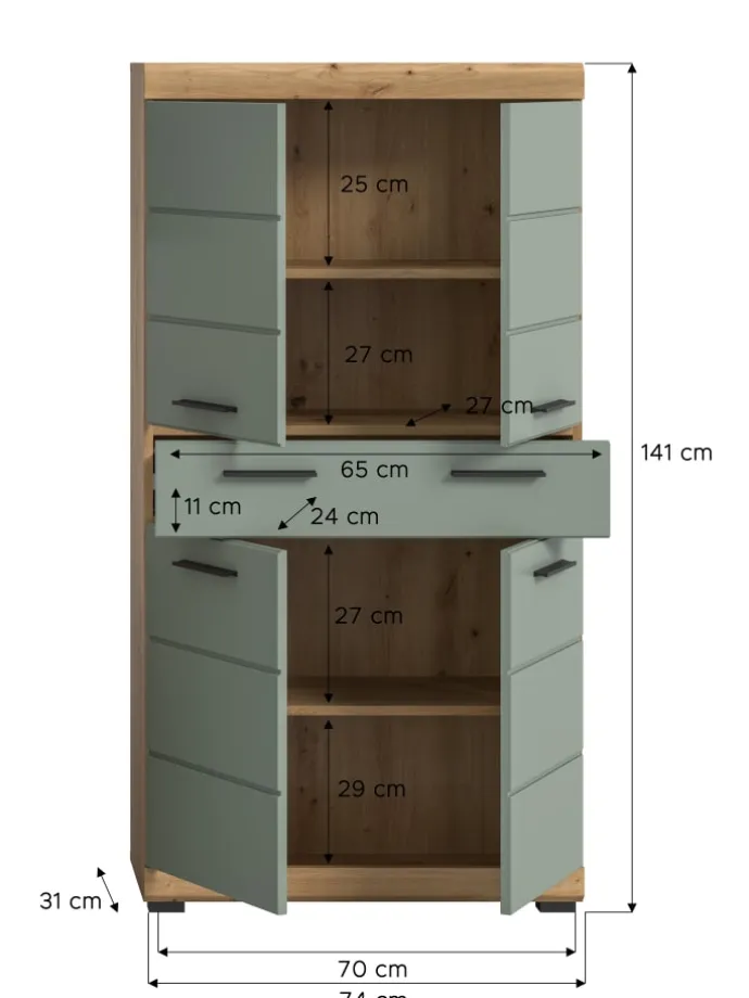 Unser trendigen Sortiment enthält einen Badezimmer Badmidischrank in angesagter Salbei Nachbildung und Artisan Eiche Finish, der deinem Badezimmer eine moderne Note verleiht. Mit seinen schlanken Maßen von 74x141x31 cm bietet er nicht nur großzügigen Stauraum, sondern auch ein stilvolles Design. Entdecke die perfekte Verbindung von Funktionalität und zeitgemäßem Stil mit diesem trendigen Badmidischrank.
