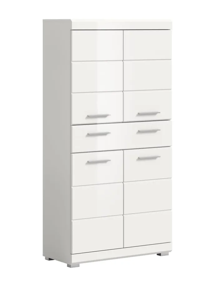 Badmidischrank in weiß/weiß hochglanz – (B) 74 x (H) 141 x (T) 31