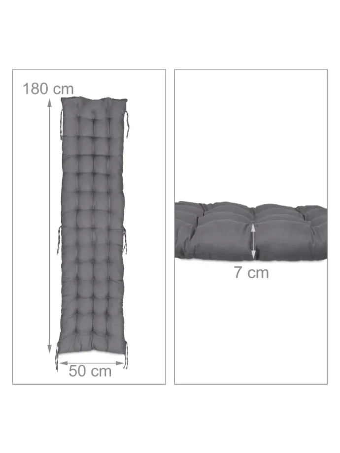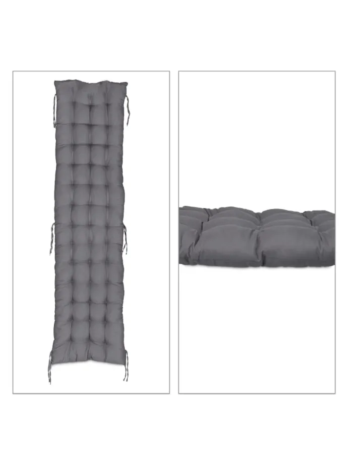Mit diesem Stuhlkissen sitzen Sie garantiert bequemer! Das graue Sitzkissen mit mit klassischem Steppmuster verfügt über eine weiche Füllung aus Kunststoff, die für einen hohen Sitzkomfort sorgt. Die Sitzauflage eignet sich insbesondere für breite Gartenbänke und Balkonliegen oder Ihre Gartenbank. Aber auch als Sitz- oder Rückenfläche für Europaletten sind die Bankauflagen geeignet. Die Bindebänder sorgen für einen sicheren Halt der Sitzkissen und verhindern Verrutschen.