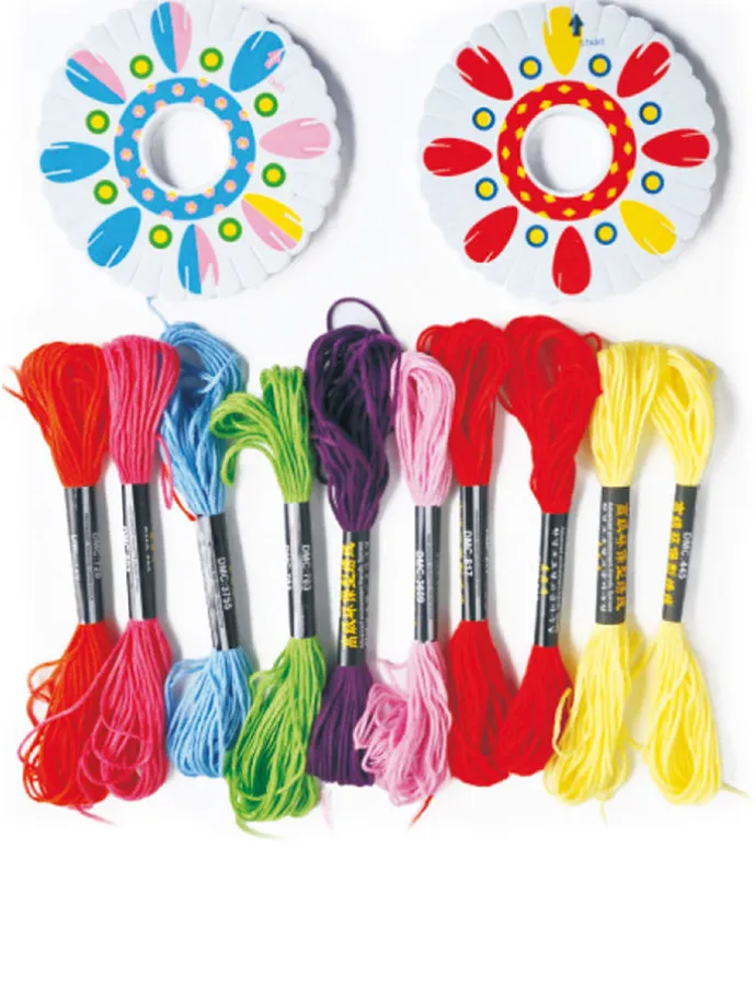 – Inhalt: verschiedener Garn, Knüpfhilfe