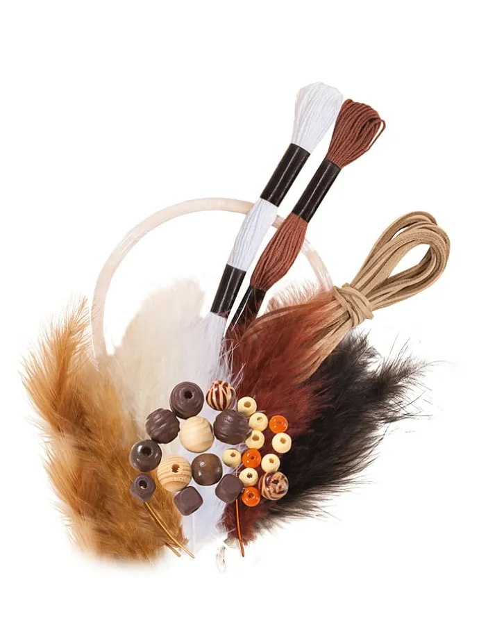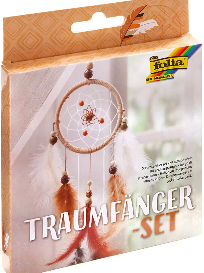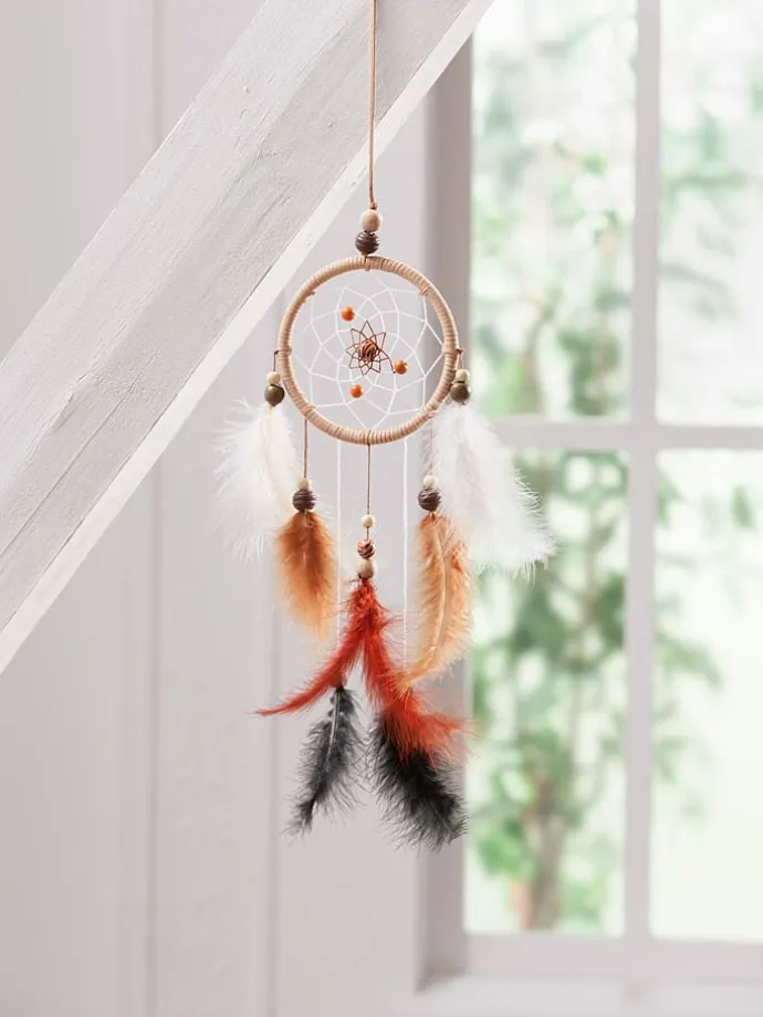 – Inhalt: 1x Mobilering (12 cm), 2x Baumwollgarn (je 8 m) 1x Kunstlederband (3,5 m), 10x Flauschfedern, 21x Holzperlen, 1x Anleitung