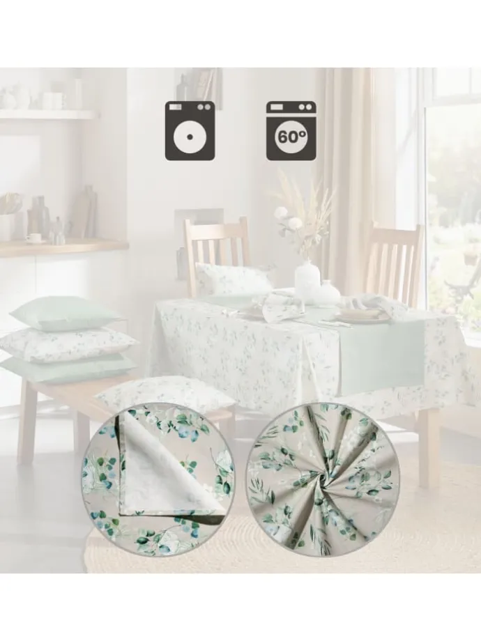 REDBEST Tischdecke „Eukalyptus“. Eukalyptuszweige bringen frische Farbakzente und verbreiten eine wohnliche Atmosphäre rund um Ihren Tisch. Durch den hochwertigen Digitaldruck behalten die Farben ihre Intensität. An dem robusten Canvas-Gewebe haben Sie lange Zeit Freude, denn es überzeugt durch seine strapazierfähige Struktur, Formbeständigkeit und Langlebigkeit. Ideal für den täglichen Einsatz in Küche, Esszimmer oder auf der Terrasse.