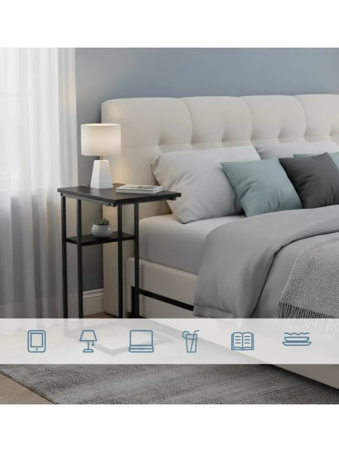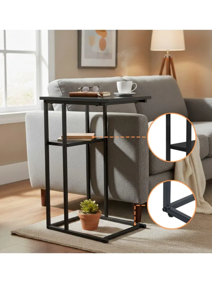 Mit diesem praktischen Beistelltisch in C-Form hast Du alles griffbereit, was Du beim Entspannen brauchst. Auf einer kleinen und einer großen Ablage finden Snacks, Getränke, Fernbedienung oder Handy ihren Platz. Dank der angenehmen Höhe erreichst Du alles bequem von Sofa oder Sessel aus. Die Kombination aus robustem Metallgestell und Tischplatten in Holzoptik macht den modernen Ablagetisch zu einem stilvollen Begleiter in Deinem Wohnzimmer.