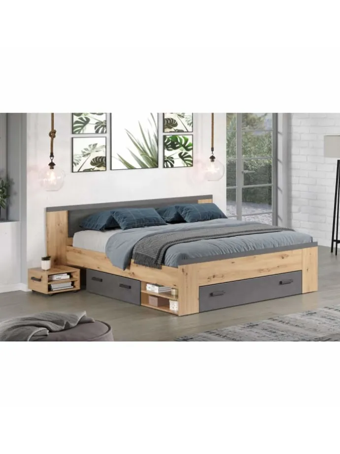 Follow Bett 180x200cm mit Nachttisch, Schubladen, Regalen auf beiden Seiten Eichendekor, Grau ist ein Bett in Eichenfarbe, das sowohl Stil als auch Funktionalität in Ihr Zuhause bringt. Follow Bett 180x200cm mit Nachttisch, Schubladen, Ablagen beidseitig Eichendekor, grau. Ohne Lattenrost. Dieses Produkt wurde mit viel Liebe zum Detail hergestellt, was sowohl Ästhetik als auch hohe Haltbarkeit gewährleistet. Bei der Gestaltung wurde sowohl auf Funktionalität als auch auf Stil geachtet, was es zur perfekten Wahl für jeden Raum in Ihrem Zuhause macht. Die verwendeten Materialien sind von hoher Qualität, was dem Produkt eine lange Lebensdauer verleiht und dafür sorgt, dass es dem täglichen Gebrauch standhält. Ob zur Aufbewahrung oder als dekorative Ergänzung, dieses Produkt wertet Ihre Einrichtung auf und bringt zusätzlichen Komfort und Eleganz in Ihr Zuhause.