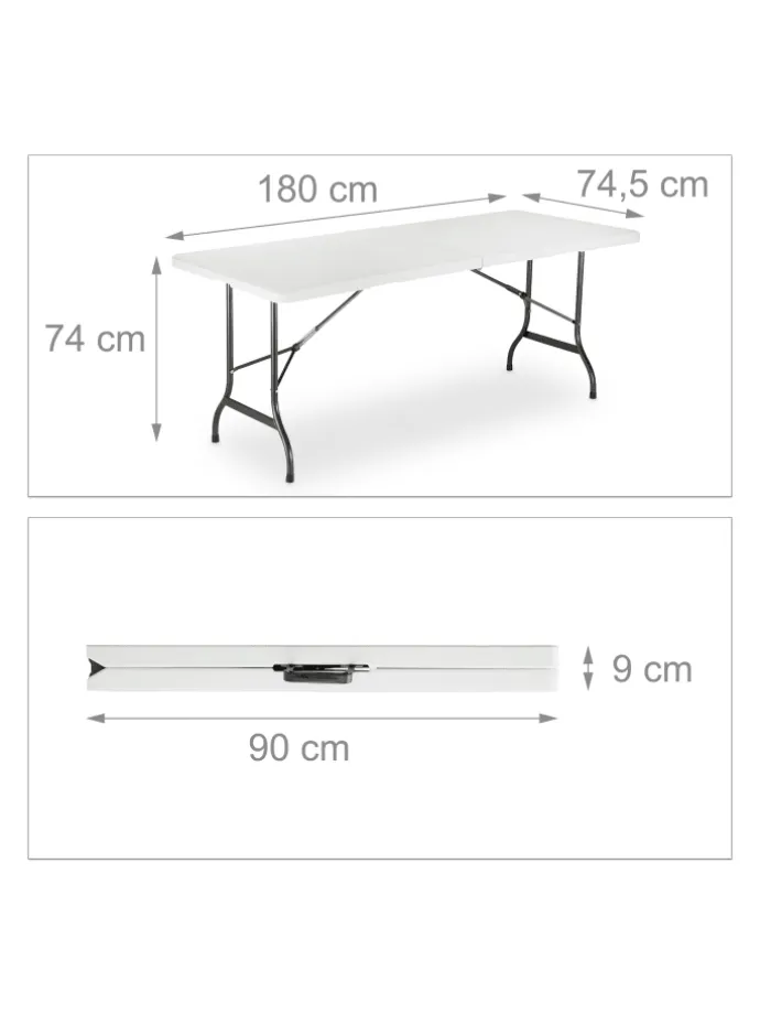 • Maße Tisch aufgebaut H x B x T: ca. 74 x 180 x 74,5 cm