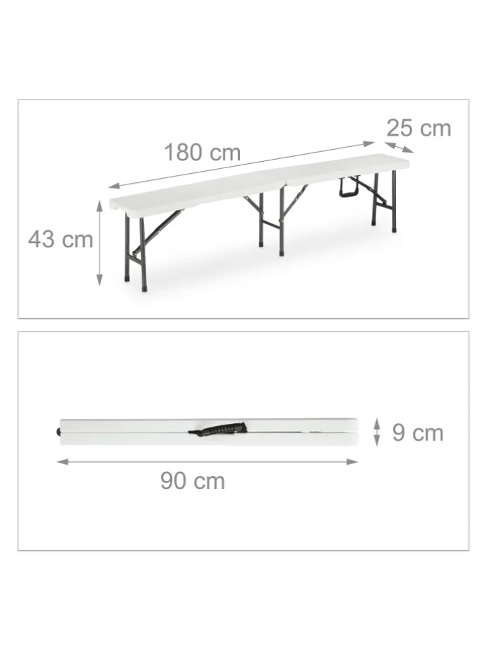 • Maße je Bank zusammengeklappt: ca. 90 x 25 x 9 cm