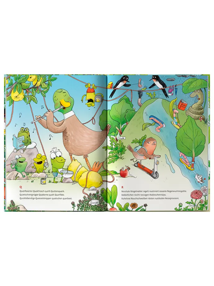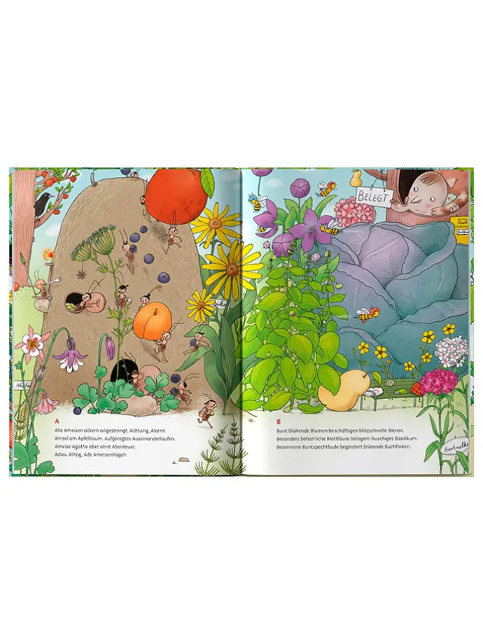 Abenteuerameise Agathe verlässt den Ameisenhügel und begibt sich auf eine Reise quer durch den wimmeligen Buchstabengarten – und dort ist ganz schön was los! So begegnet sie zum Beispiel einer chattenden Chinchilladame, bestaunt die Werke der vom Osterhasen organisierten Origami-Olympiade und nimmt an einer rasanten Regenwurmregatta teil. Und das ist noch längst nicht alles, was sie bis zu ihrer Ankunft bei Zirkusziege Zora erlebt … Ein humorvolles Wimmelbuch zum Schmunzeln und Kennenlernen der Buchstaben von A bis Z – voller Wortwitz und lustiger Bilder!