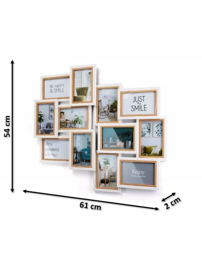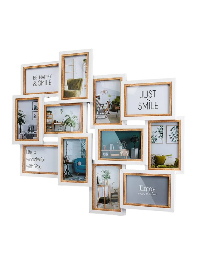 Ein Bild sagt mehr als tausend Worte: Und eine Collage aus diesen Momenten erzählt eine ganze Lebensgeschichte – Für all diejenigen, die Ihre Bilder in ansprechenden Weise präsentieren möchten, ist unsere Bilderrahmencollage die perfekte Wahl. Die Collage kann sowohl im Hoch- als auch im Querformat aufgehängt werden, was Ihnen die Freiheit gibt, sie an jede Wand oder in jeden Raum anzupassen. Sie können die Bilder nach Ihren Wünschen anordnen und jederzeit austauschen, um neue Geschichten zu erzählen. Der Mehrfachbilderrahmen aus Holz mit Platz für 12 Bilder im Format 10×15 cm strahlt zeitlose Eleganz aus – Die weiße Farbe passt zu nahezu jedem Einrichtungsstil und verleiht Ihren Bildern einen stilvollen Rahmen. Diese Bildercollage ist nicht nur eine großartige Ergänzung für Ihr Zuhause, sondern auch eine herzliche Geschenkidee für Familie und Freunde. Verwandeln Sie besondere Momente in bleibende Erinnerungen und schenken Sie sie in Form dieser wunderschönen Collage.