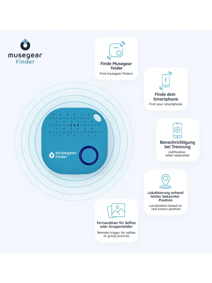 Egal ob Wohnungsschlüssel, Autoschlüssel, Geldbeutel, Smartphone, Fernbedienung, Tablet oder Handtasche. Mit dem innovativen und höchst effizienten musegear Tracker findest Du alles in Sekundenschnelle wieder.