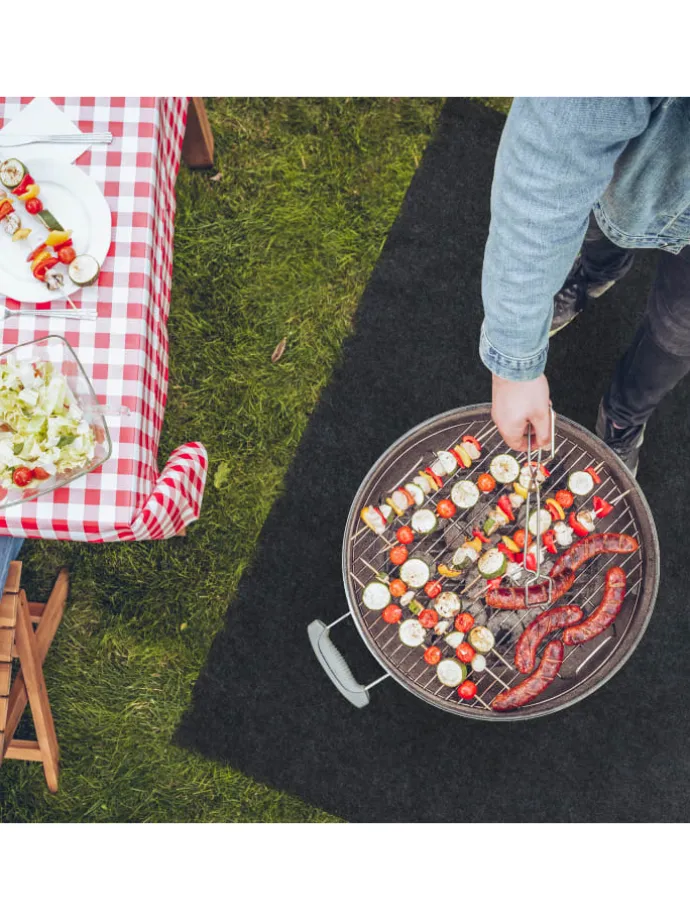 Hinweis: Entfernen Sie heruntergefallene, heiße Grillkohle schnellstmöglich von der Matte, um bleibende Schäden an dem Produkt zu vermeiden.
