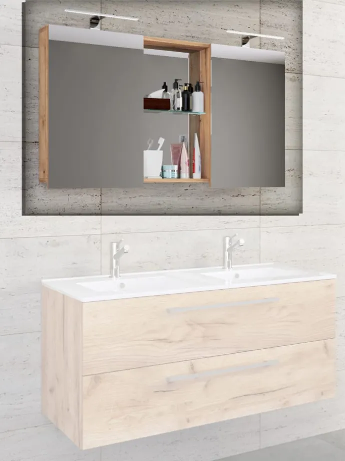 Der zeitlose Spiegelschrank „Budasi“ passt nahezu in jedes Badezimmer.