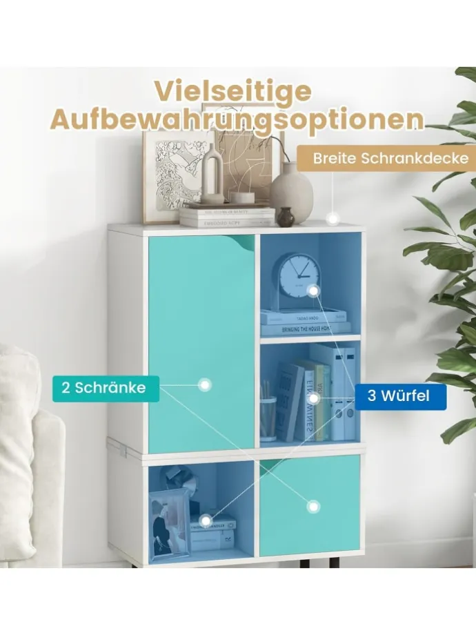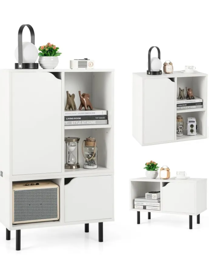 Vielseitige Aufbewahrung: Dieses Regal verfügt insgesamt über 3 Ablagefächer und 2 Schränke mit Türen und bietet somit ausreichend Stauraum für Bücher, Dekorationen, Fotos, Pflanzen oder Aufbewahrungsboxen usw. Darüber hinaus können die 3-fach verstellbaren Ablageflächen je nach Größe der Gegenstände angepasst werden.
