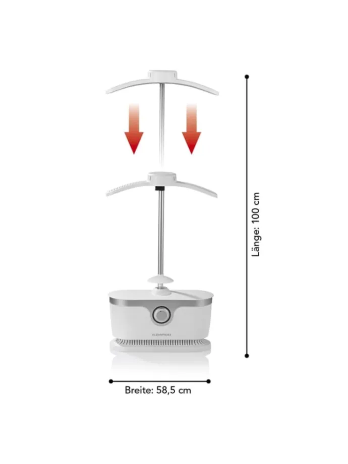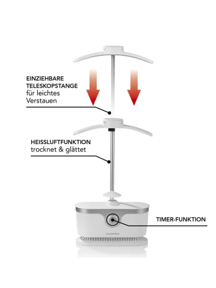 Mit Teleskopstange inkl. Tropf-Stopp-Funktion und 5 Clips für noch glattere Kleidung. Für trocknergeeignete Textilien wie Jeans, Leinen, Baumwolle, Polyester & Co. Nicht geeignet für empfindliche Textilien wie Wolle o. Ä., die eingehen oder durch Hitze beschädigt werden können. Leichte Montage.