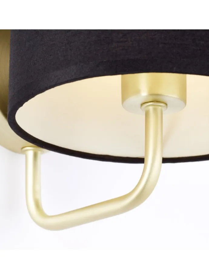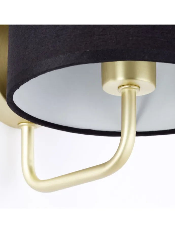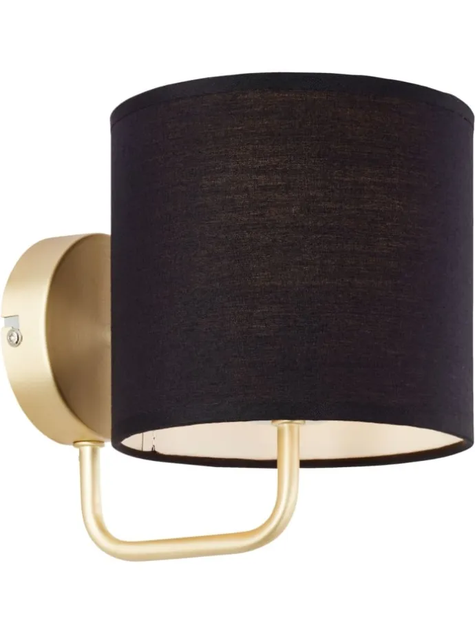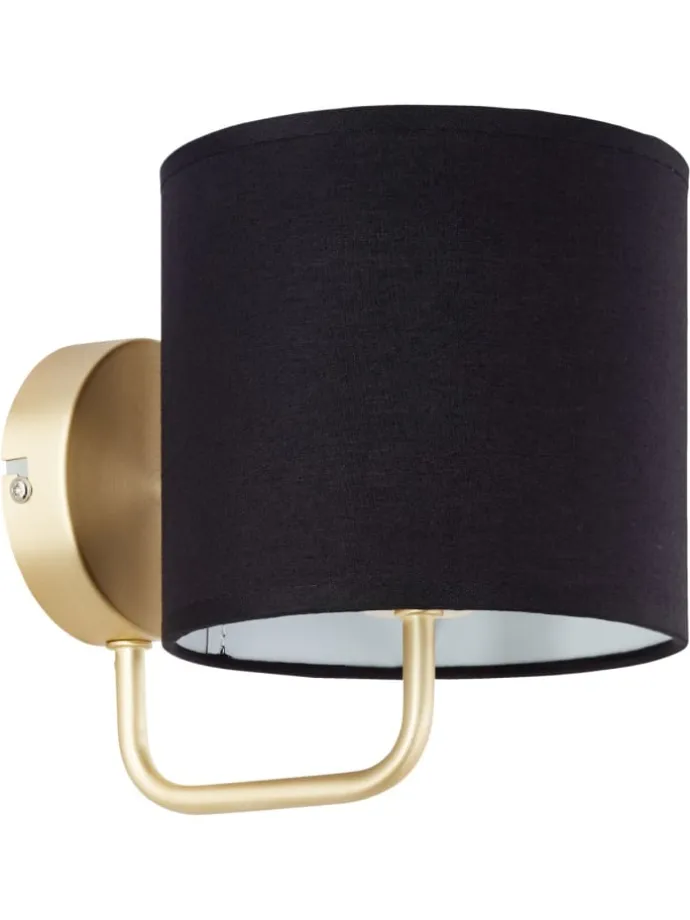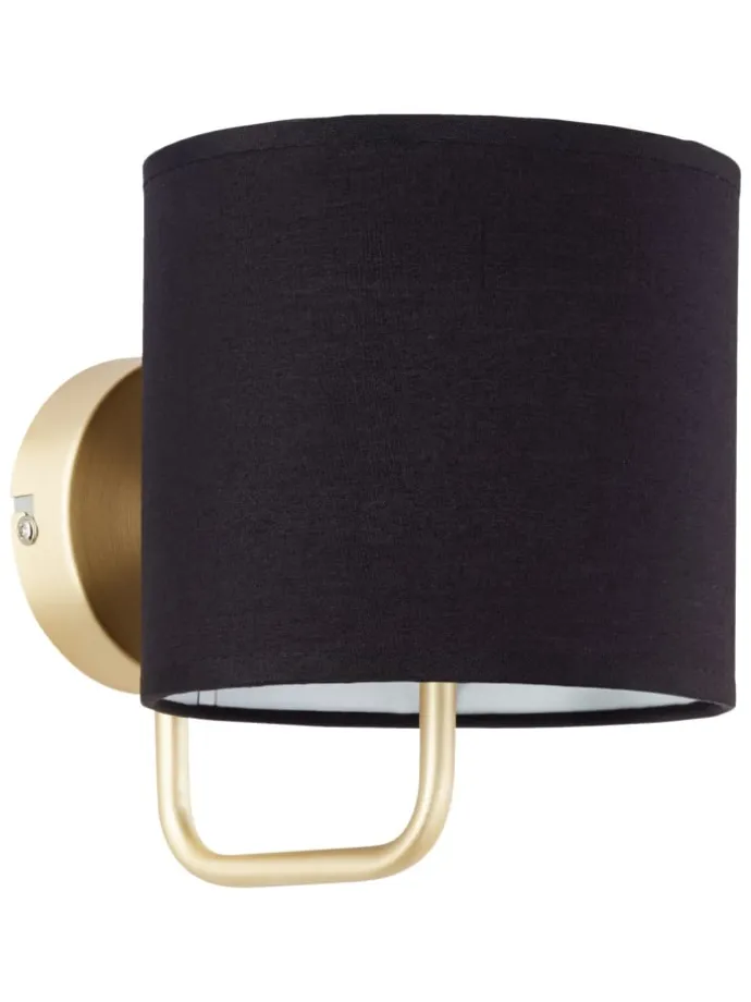 LIEFERUMFANG – 1x Wandleuchte – Montagematerial enthalten – HxBxT: 180 x 150 x 198 mm, Gewicht: 0,3kg – Material: Metall/Textil, Farbe: messing gebürstet/schwarz