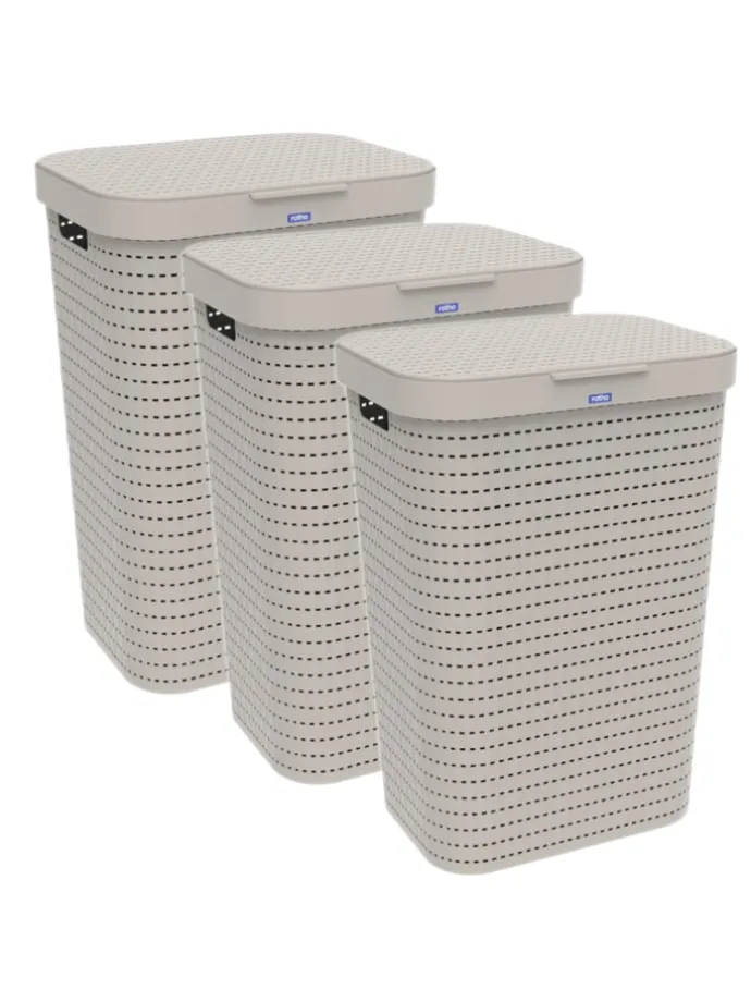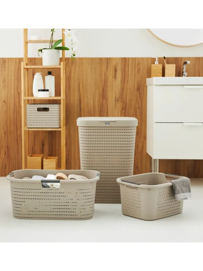 Der Wäschesammler Country von Rotho vereint wunderschönes Design mit der Pflegeleichtheit des Kunststoffs und ist damit ideal für das Sammeln Ihrer Wäsche geeignet. Der Deckel ist mit Filmscharnieren am Unterteil angebracht und lässt sich komplett aufklappen, was für einfaches Befüllen der Wäschekiste sorgt. Die Wäschetonne verfügt ausserdem über zwei praktische Tragegriffe an den Seiten für einfaches Tragen zur Waschmaschine. Hochwertiges Material und gute Hygiene Durch die aufwändige Rattan-Optik hat die Wäschetonne auf allen vier Seiten und dem Deckel Luftlöcher, welche für Luftzirkulation innerhalb der Wäschebox sorgen. Dadurch wird unangenehmen Gerüchen nach längerem Liegen von Schmutzwäsche entgegengewirkt. Das dezente Design passt zu verschiedenen Wohnstilen und so ist der Wäschesammler ideal für das Bade-, Schlaf- oder auch fürs Kinderzimmer geeignet. Der hochwertige Kunststoff und die gute Verarbeitung sorgen für eine lange Lebensdauer des Produkts.