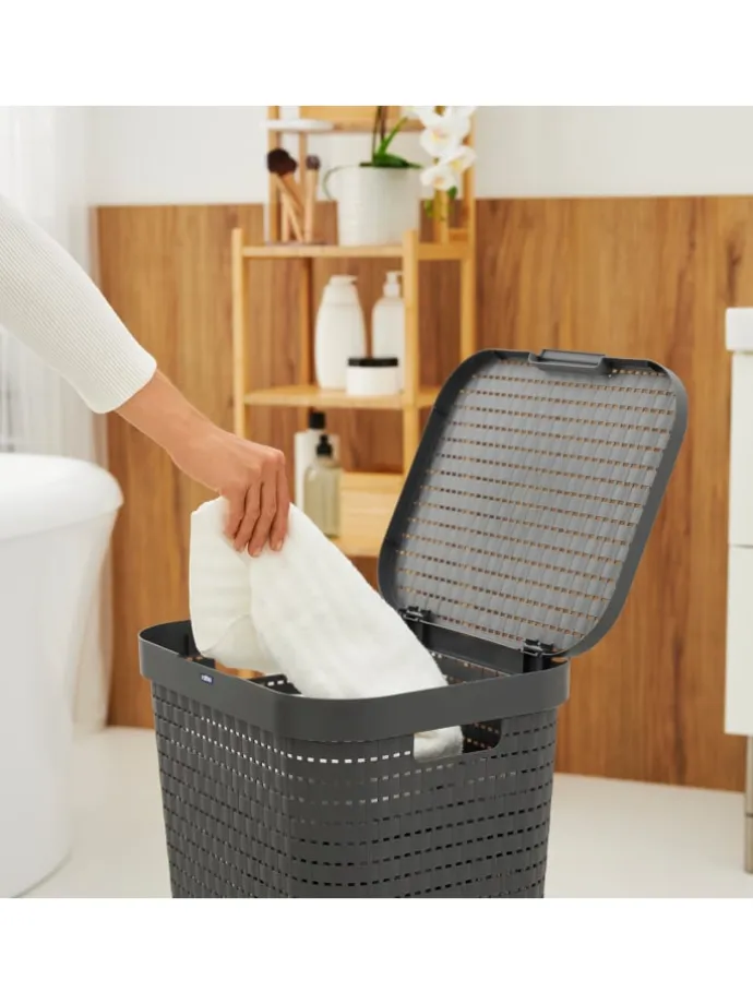 Der Wäschesammler COUNTRY nimmt bis zu 55 l Wäsche auf und ist dank seiner schmalen Form äusserst platzsparend. Seine durchbrochene Rattan-Struktur wirkt edel und modern, zugleich sorgt sie für Luftzirkulation an allen vier Seiten – und damit für verbesserte Hygiene. Zwei ergonomisch gestaltete Tragegriffe an den Seitenerlauben einen bequemen Transport des Behälters. Das geringe Eigengewicht sowie die hochwertige, ecken- und kantenfreie Verarbeitung des Wäschesammlers sorgen für optimalen Komfort. Erhältlich ist der Wäschesammler COUNTRY in verschiedenen attraktiven Farbvarianten, die sich jeder Wohnumgebung anpassen. Mit diesem Haushaltshelfer sammeln Sie Ihre Schmutzwäsche platzsparend und diskret!