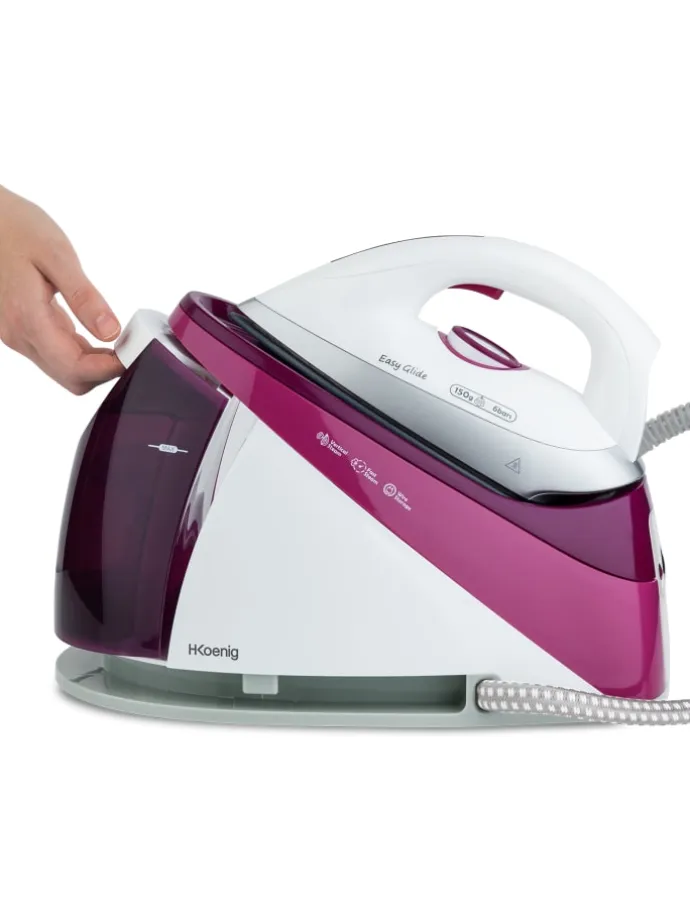 Das H.Koenig V26 Dampfgenerator-Bügeleisen ermöglicht einfaches und effizientes Bügeln dank seines 6 bar Dampfdrucks und seiner Keramikbasis. Das V26 ist in weniger als einer Minute einsatzbereit und verfügt über die neue Technologie der „unbegrenzten Autonomie“, die es ermöglicht, den Tank während des Gebrauchs zu füllen. Die Vertikaldampffunktion ermöglicht das Bügeln von zerknitterten Gardinen und von Kleidung direkt auf Bügeln. Die Funktion „Anti-Kalk-Kollektor“ beseitigt Kalkablagerungen und garantiert eine längere Lebensdauer des Produkts.