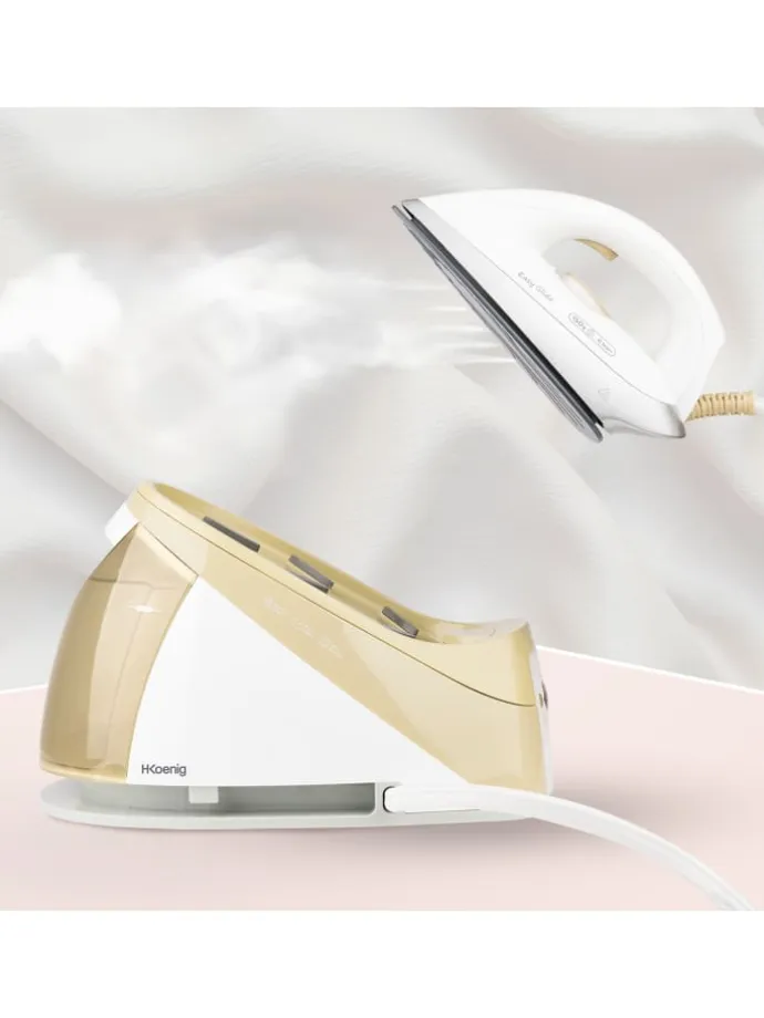 Das H.Koenig V28 Dampfgenerator-Bügeleisen ermöglicht einfaches und effizientes Bügeln dank seines 6 bar Dampfdrucks und seiner Keramikbasis. Das V28 ist in weniger als einer Minute einsatzbereit und verfügt über die neue Technologie der „unbegrenzten Autonomie“, die es ermöglicht, den Tank während des Gebrauchs zu füllen. Die Vertikaldampffunktion ermöglicht das Bügeln von zerknitterten Gardinen und von Kleidung direkt auf Bügeln. Die Funktion „Anti-Kalk-Kollektor“ beseitigt Kalkablagerungen und garantiert eine längere Lebensdauer des Produkts.
