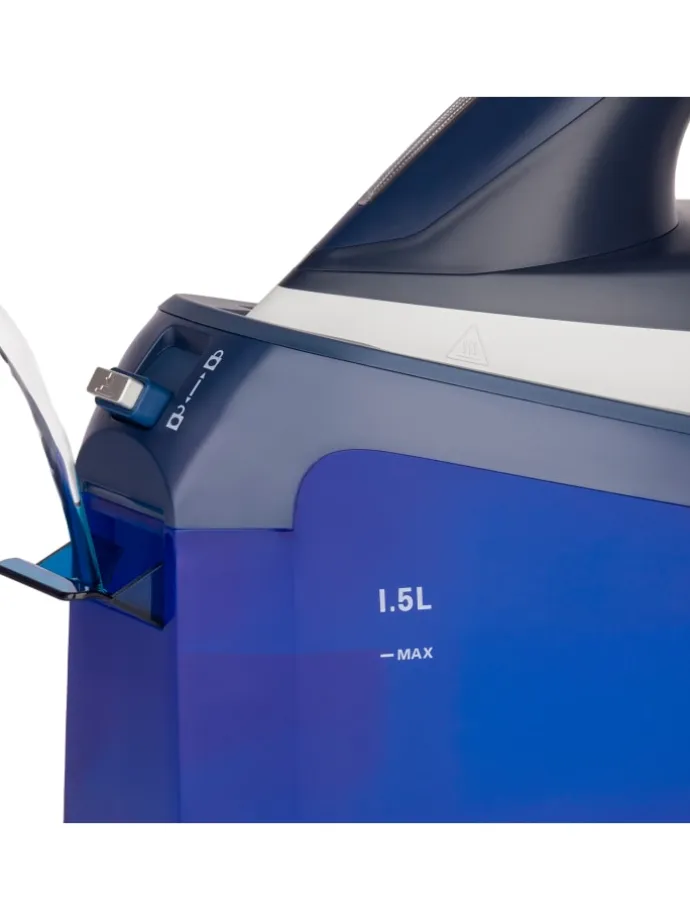 Dank seiner 2200 Watt, seinem Pumpendruck von 5,5 bar und dem Dampfdurchsatz von 120 g/min können Sie mit diesem Dampfbügeleisen alle Arten von Stoffen bügeln.