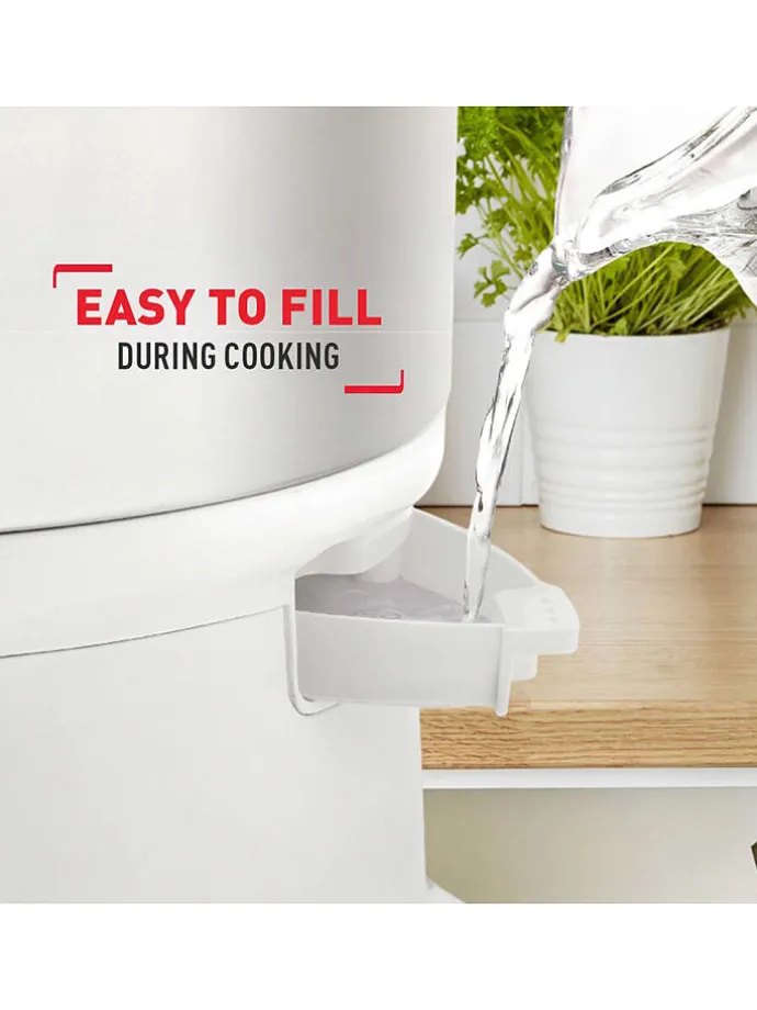 – der Dampfgarer kann während des Kochens jederzeit aufgefüllt werden, dank der externen Wassereinfüllöffnung