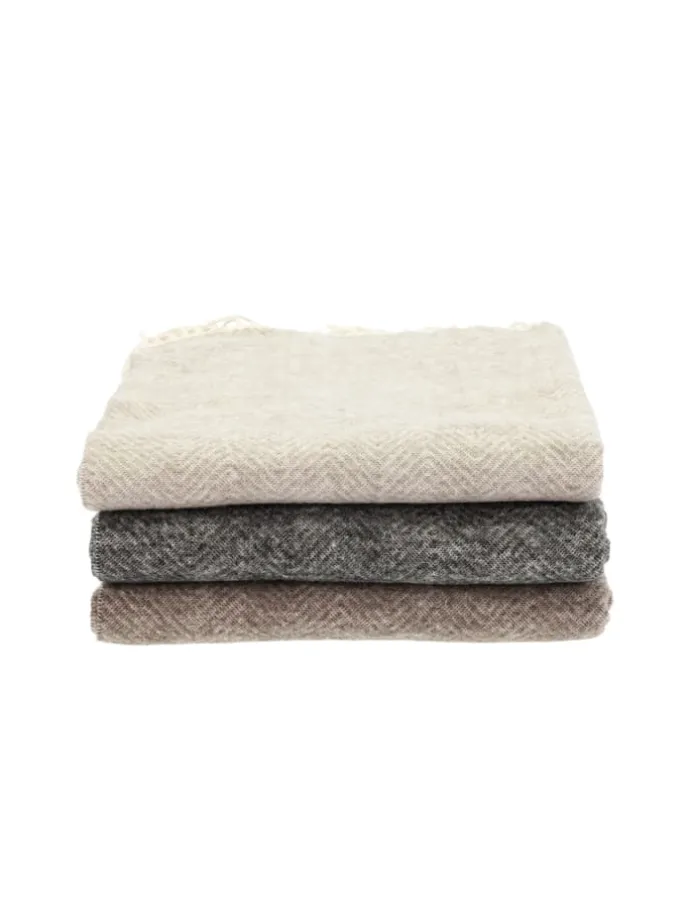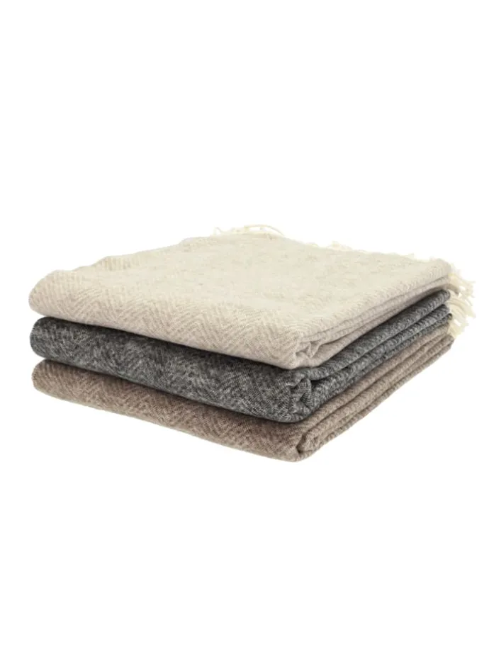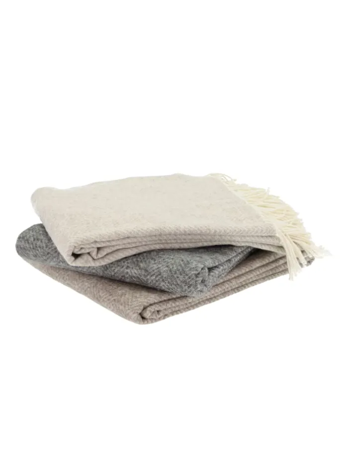 35% Baumwolle/30% Viskose/20% Woll/15% Polyester Beige Stillness ist ein Design inspiriert von einfachen Freuden, schlichter Perfektion und neu interpretierten Traditionen. Das Fischgrätmuster ist eine perfekte Wiederholung, jedoch wirkt das Muster durch den gebürsteten Stoff weicher. Ein klassisches Plaid für ruhige und entspannende Momente. Farblich aufeinander abgestimmte Töne, die für einen geerdeten, natürlichen Look sorgen.