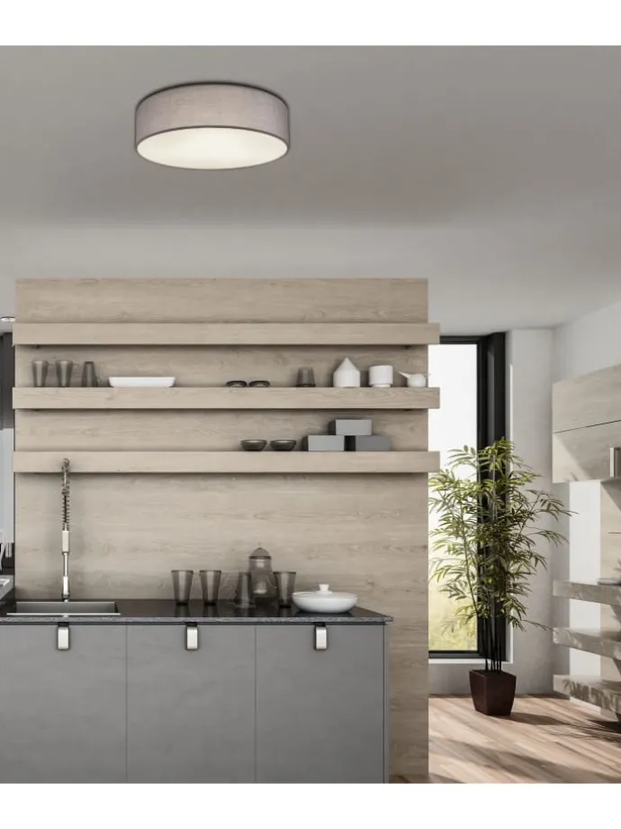 Deckenleuchte Metall weiß, Textil anthrazit, Kunststoff opal, ø: 400mm, H: 100mm, exkl. 3x E27 LED 15W 230V