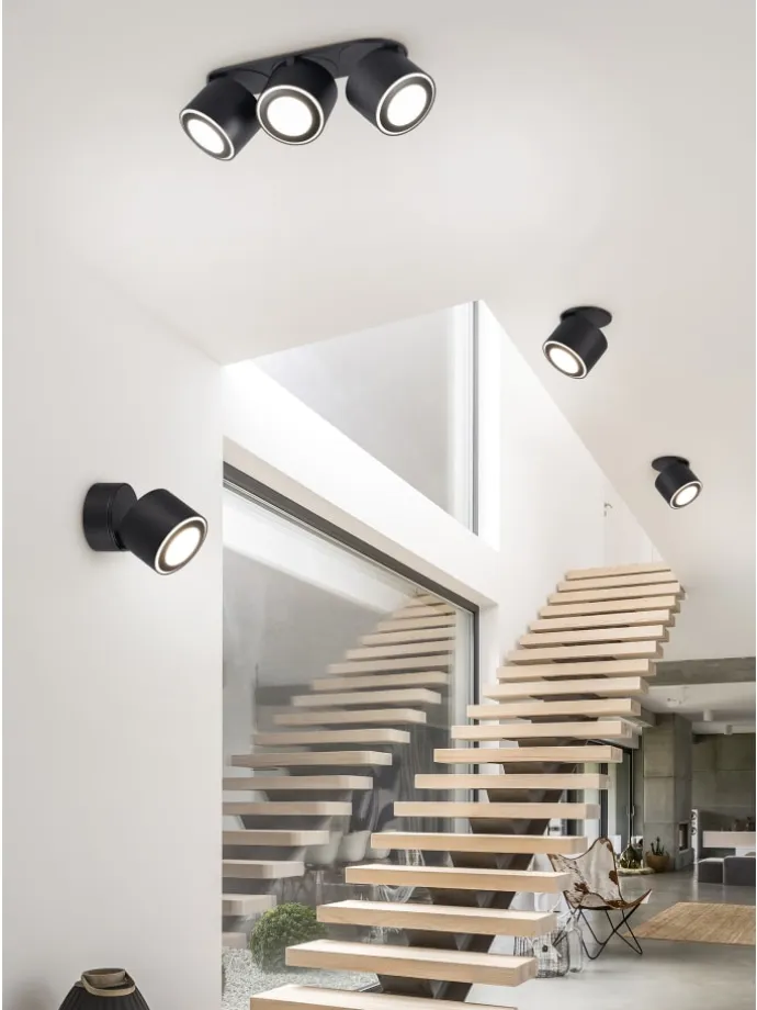 Die Spotleuchten der Serie TAURUS bieten vielfältige Einsatzmöglichkeiten und setzen Wohnräume gekonnt in Szene. Die Spots können je nach Belieben als Ein- oder Aufbauleuchte montiert werden und bestehen aus zwei Lichtquellen, einem Hauptlicht und einem äußeren Lichtring, die getrennt voneinander schaltbar sind. Bei einer Verwendung als Einbauleuchte ist ein Deckenausschnitt von 80 mm notwendig. Ob im Flur, im Wohn- oder Schlafzimmer, die moderne Leuchte sorgt für optimale Lichtverhältnisse und individuelle Lichtakzente. Zusätzlich ist die Spotleuchte schwenkbar und kann individuell ausgerichtet werden. Durch die schlichte Farbgestaltung in Weiß matt, ist ein leichtes Integrieren in vorhandene Farbkonzepte möglich. Darüber hinaus verfügt die Leuchte über eine moderne LED Technologie, die sich durch eine hohe Lichtqualität und Energieeffizienz auszeichnet. Im Vergleich zu herkömmlichen Halogen Leuchtmitteln lassen sich bis zu 80% der Energiekosten sparen. Zusätzlich haben LED Lichtquellen eine lange Lebensdauer, produzieren weniger Wärme und schonen die Umwelt.