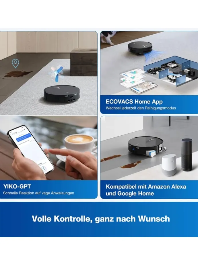 Die KI-Funktionen des neuen intelligenten YIKO-GPT Assistenten ermöglichen dem Roboter unter Verwendung des erweiterten Large Language Models (LLM), das Reinigungsvorhaben des Benutzers zu verstehen, und geben genaues und intelligentes Feedback über verschiedene Kommunikationswege, einschließlich Text, Sprachnachrichten oder Gespräche.
