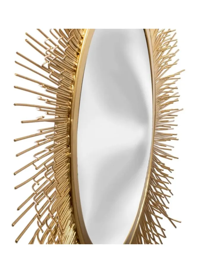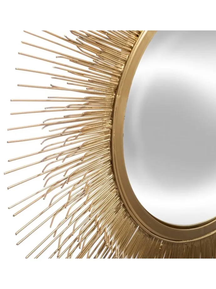 Dekorativer Spiegel rund SUN, Ø 58 cm, gold. Ein Spiegel ist der Grundgegenstand in jedem Haus, und vor allem einer, in dem man nicht nur durchschauen kann, sondern auch an sich ein interessantes Gadget macht. Auf der Suche nach einem neuen Spiegel für den Flur, das Schlafzimmer oder das Badezimmer? Um einen Spiegel zu wählen, der perfekt auf die Einrichtung Ihrer Innenräume abgestimmt ist, überprüfen Sie das reichhaltige Angebot unseres Geschäfts. Sie finden hier hängende Spiegel sowie stehende Spiegel, die für jeden Raum geeignet sind. Nutzen Sie unser Angebot und wählen Sie einen Spiegel, der sich ideal für Ihr Interieur und deren Design eignet!