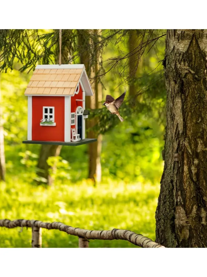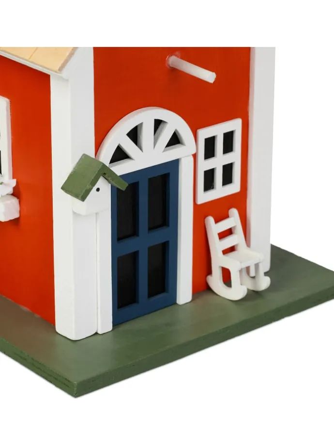 Dieses Deko Vogelhäuschen ist ein kreativer Hingucker für Dein Zuhause. Die Vogelvilla überzeugt mit ihrem tollen und detailreichen Landhausstil und sorgt für eine wohlfühlende Atmosphäre in Deinem Garten, auf Deinem Balkon oder Deiner Terrasse. Dank der praktischen Schlaufe kannst Du das Vogelhäuschen aufhängen. Auch stehend überzeugt das Mini Vogelhaus. Das Holzhaus besteht aus Pappel sowie Kiefer und ist wetterfest. Dadurch hast du lange Freude an der niedlichen Vogelhütte.