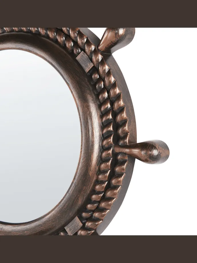 Maritimer Spiegel mit Seilmuster-Rahmen. Dieser Spiegel verleiht Ihrem Zimmer nicht nur ein maritimes Flair, sondern vergrößert es auch visuell. Der Rahmen ist aus langlebigem Kunststoff gefertigt und in dunkelbrauner Farbe im Used-Look lackiert, welches dem Dekorationsstück einen Vintage-Touch verleiht. Außerdem ist er mit einem wunderschönen Seilmuster versehen, das das Gesamtdesign unterstreicht. Hängen Sie den Wandspiegel in Ihrem Wohn- oder Schlafzimmer auf, um einen Eyecatcher zu schaffen und Ihre Gäste zu verzaubern.