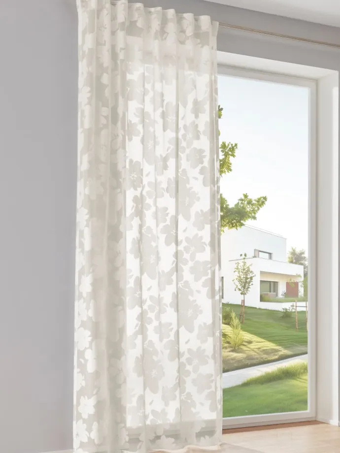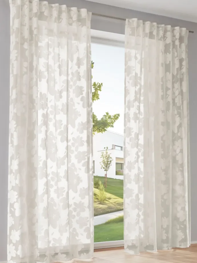 Dekostore Halbtransparente, weich fließende Ausbrenner-Ware mit dekorativem Blüten-Dessin.
