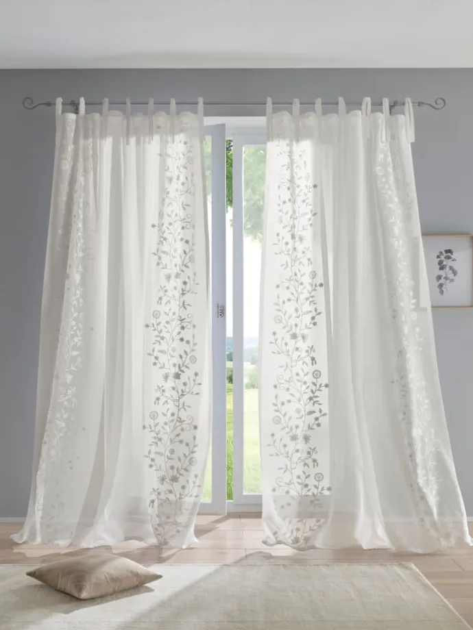 Dekostore Halbtransparent, mit seitlicher, farblich abgesetzter Stickerei.