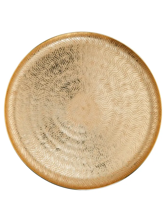 – Hochwertig verarbeitet: Die Dekoteller sind aus Aluminium gefertigt und weisen geriffelte Effekte und einen schimmernden Gold-Ton auf. Ein Durchmesser von 38 cm lässt viel Platz für Deko-Ideen oder zur Aufbewahrung.
