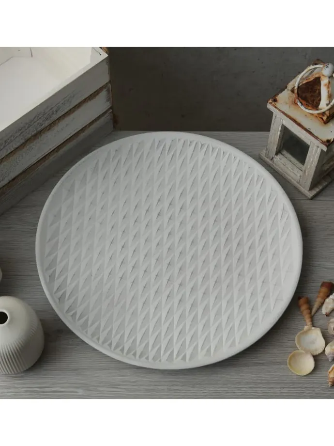 Dekoteller weiß aus MDF Holz mit Rautenmuster 34,5cm