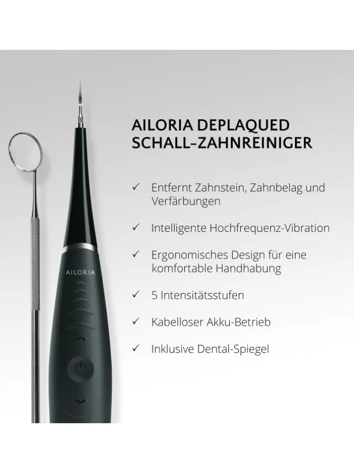 Die Schallreinigungsfunktion von DEPLAQUED ist eine Kombination aus akustischen und mechanischen Bewegungen zur Entfernung von Zahnbelag und Verfärbungen. Zudem ist der Schall-Zahnreiniger nach IPX6-Schutz-Klasse gegen Spritzwasser geschützt. Dank der fünf Intensitätsstufen kann der Schall-Zahnreiniger den individuellen Bedürfnissen der Zahnreinigung angepasst werden.