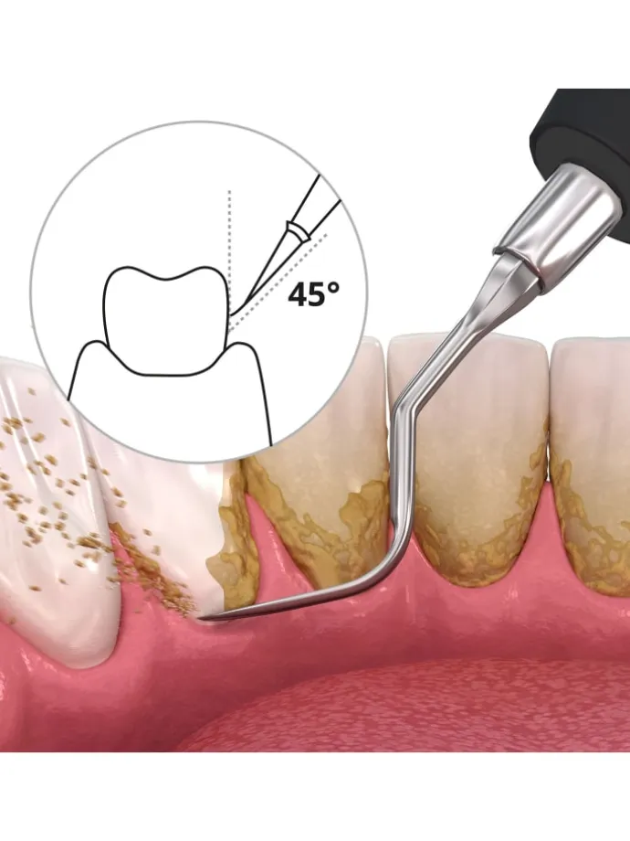 Der Zahnreiniger verwendet eine hochfrequente Schallvibrationstechnologie, um Zahnstein, Zahnbelag und Verfärbungen zu beseitigen. Die Schallreinigung ist die bevorzugte und bewährte Methode professioneller Zahnärzte bei der Entfernung von Zahnbelag.