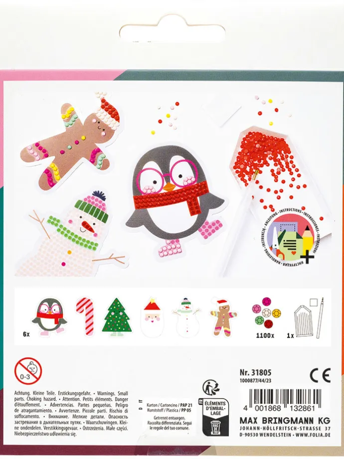– Inhalt: 6x Sticker in 6 Motiven, 1.100x Diamonds farbig sortiert, 1x Picker, 1x Tablett, 1x Wachskleber inkl. Anleitung