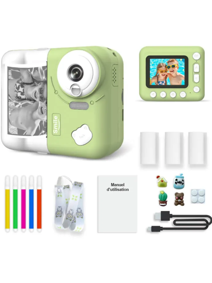 – Inhalt: Digitalkamera für Kinder mit Sofortdruck, Ladekabel, Handgelenkband, Aufkleber zur Personalisierung, 3x Druckrolle