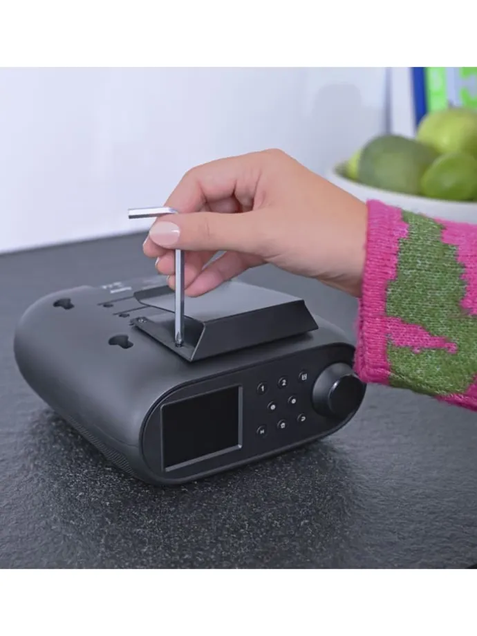 – ob als Küchenradio, Werkstattradio oder Regalradio: Das platzsparende Unterbauradio begleitet Sie in jedem Raum mit Ihrem Lieblingssound und kann fest montiert werden oder ganz einfach bohrfrei per Klemmhalterung