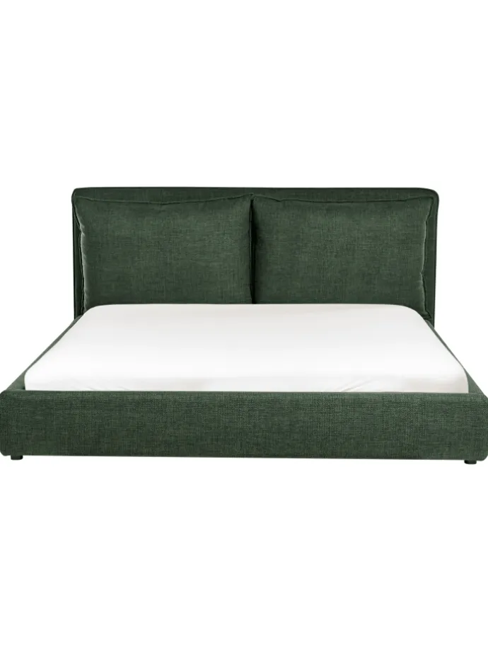 Moderner Bettrahmen mit hohem, gepolstertem Kopfteil. Verleihen Sie Ihrem Schlafzimmer einen modernen, minimalistischen Look mit diesem stilvollen und komfortablen Bett, das eine ruhige und einladende Atmosphäre schafft. Der strapazierfähige, pflegeleichte Bezug und das hohe Kopfteil sorgen für besonderen Komfort beim Lesen oder Entspannen. Dank des stabilen Holzrahmens bietet das Bett eine zuverlässige Grundlage für Ihre Matratze und garantiert einen erholsamen Schlaf.