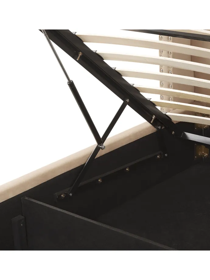 Sie kaufen: 1 x Federholzlattenrost (Anzahl der Latten: 42), 1 x Bettrahmen mit Stauraum, Nicht im Lieferumfang enthalten: Matratze, Bettwäsche und Kissen