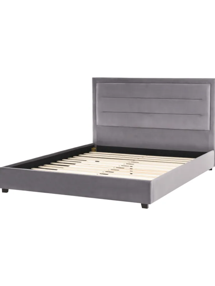 Dunkelgraues Samt-Bett mit gepolstertem Rahmen. Ein gutes Bett sorgt für einen erholsamen Schlaf, dank dem Sie sich am Morgen erfrischt und ausgeruht fühlen. Dieses Möbelstück garantiert Ihnen nicht nur das, sondern wird auch zum Mittelpunkt Ihres Schlafzimmers, das Ihrem Raum ein modernes Flair verleiht. Das Bett ist mit hochwertigem Samt gepolstert, der viele Jahre lang halten wird. Zudem wird das Material in Kombination mit dem gepolsterten Kopfteil Ihre Gäste begeistern.