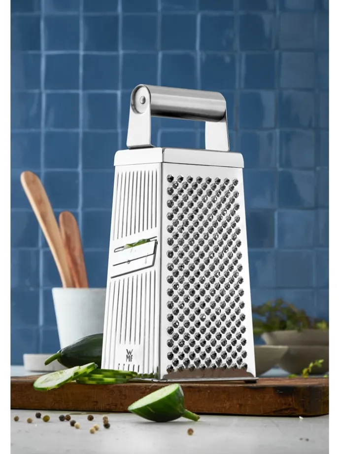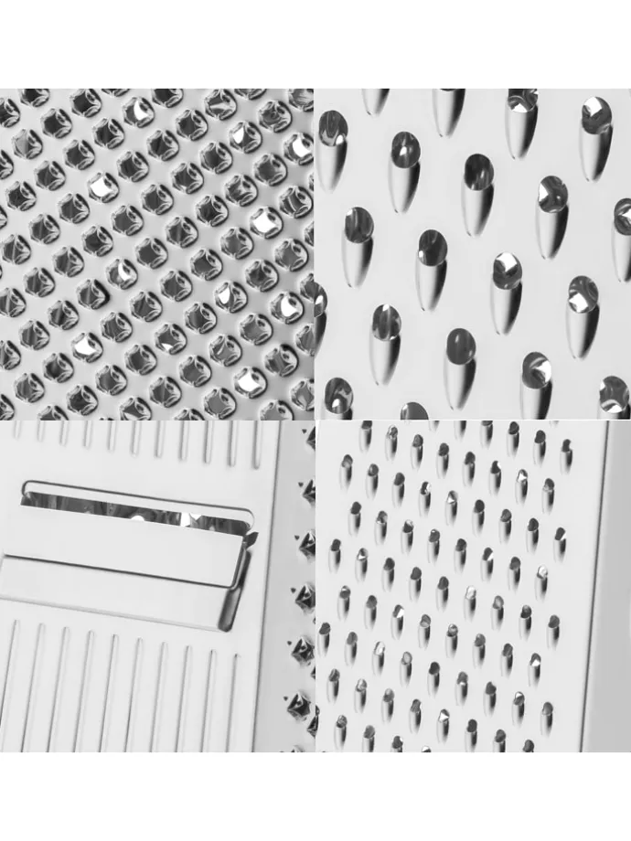 – 4 verschiedene Reibeflächen (Hobeln, Reiben und Raspeln in 2 Stärken)