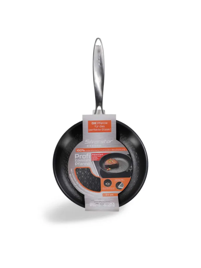 Wenn es um die Pfanne für das perfekte Steak geht, ist das die erste Wahl: Die Profi Edelstahl Pfanne von Silverstar®! Die Pfanne vereint die besten Eigenschaften einer Edelstahlpfanne mit denen einer Antihaftpfanne.