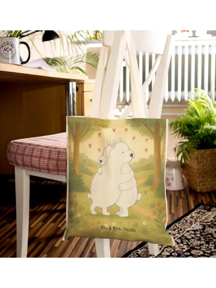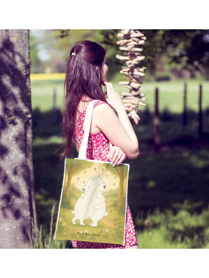 Stelle dir vor, mit einer Tasche zu flanieren, die mehr als nur ein AcZeichenssoire ist: ein Statement von Geschmack und Bewusstsein. Unsere Mr. & Mrs. Panda Einkaufstasche verkörpert genau das. Sie ist nicht nur ein idealer Begleiter für den täglichen Einkauf, sondern dank ihres einzigartigen Designs auch ein modisches Statement. Gefertigt aus langlebiger Kunstfaser, verspricht sie Stabilität ohne auf Stil zu verzichten. Die Tasche ist abwischbar und waschbar, was sie besonders pflegeleicht macht. Die raffinierten Innennähte erhöhen die Formbeständigkeit, sodass sie dir lange erhalten bleibt. Ganz gleich, ob du sie als Beuteltasche, Shopper oder Umhängetasche nutzt, sie bietet stets ausreichend Platz und Komfort. Ihre Robustheit, gepaart mit den niedlichen Mr. & Mrs. Panda Motiven, macht sie zum idealen Allrounder für jede Gelegenheit. Die Henkel sorgen für einen bequemen Transport, egal wohin du gehst.